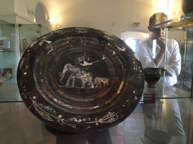 Als das Museum wieder offen war, streifte ich durch seine dämmrig-kühlen Räume. Von Vitrine zu Vitrine. Darin war Keramik aus den unterschiedlichsten Gegenden Italiens zu sehen. Es muss in der Römerzeit einen regen Austausch zwischen Italien und Korsika gegeben haben. Henkeltassen mit Eulen darauf, Duftschälchen mit Schlangenmustern, wahrscheinlich aus der Campagna, Elefantenteller, eine Etruskervase mit einem nackten Paar darauf. Dann rostige Schwerter, Dolche, Speerspitzen und haufenweise Öllämpchen und Mörser.