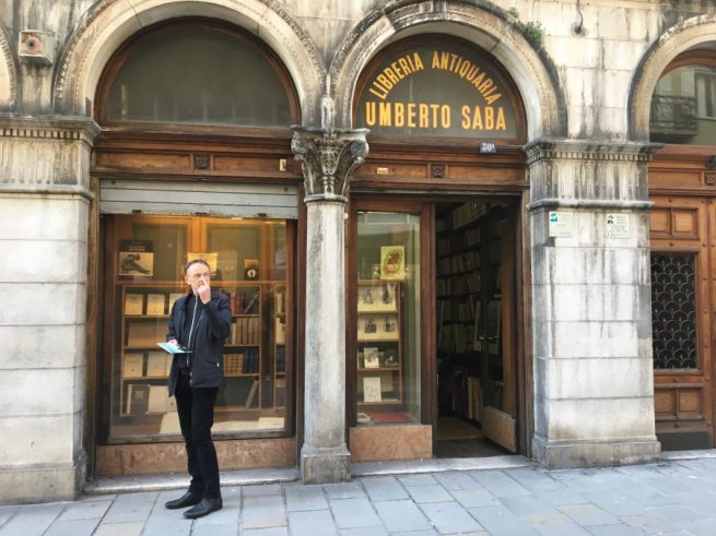 Wir wohnten im Hotel „Continentale“ an der Via San Nicolò. Schräg gegenüber war das Buchantiquariat „Umberto Saba“. Ein dunkles Lokal mit hohen, nackten Bücherwänden. Während ich mich darin umsah, fragte ich mich, wie viele der Bücher schon in den Regalen gestanden haben mochten, als Umberto Saba die Buchhandlung 1919 gekauft hatte. Er war eines Morgens an der Via San Nicolò vorbei gekommen und hatte zum ersten Mal diese „düstere Höhle“ bemerkt. Er fand es eine traurige Vorstellung, sein Leben darin verbringen zu müssen. Ein paar Tage später bot ihm der Besitzer das dunkle Buchreich zum Kauf an, und Saba erwarb es. Er hatte die Absicht, die Bücher in die Adria zu schmeißen und das leergeräumte Lokal zu einem höheren Preis zu verkaufen. Doch nach ein paar Tagen verließ ihn der Mut, seine Absicht in Tat umzusetzen. Die alten Bücher, mit denen er inhaltlich nicht viel anfangen konnte, bezauberten ihn. So verbrachte er die meiste Zeit seines weiteren Lebens hier drin, denn von den eigenen Gedichten zu leben, war unmöglich. Im Gedicht Avevo schreibt er: „Man musste von etwas leben. Unter Übeln habe ich das schicklichste gewählt: ein kleines erlesenes Geschäft für alte Bücher.“ Das Buchantiquariat wurde sein Zufluchtsort vor den Miseren der Zeit.